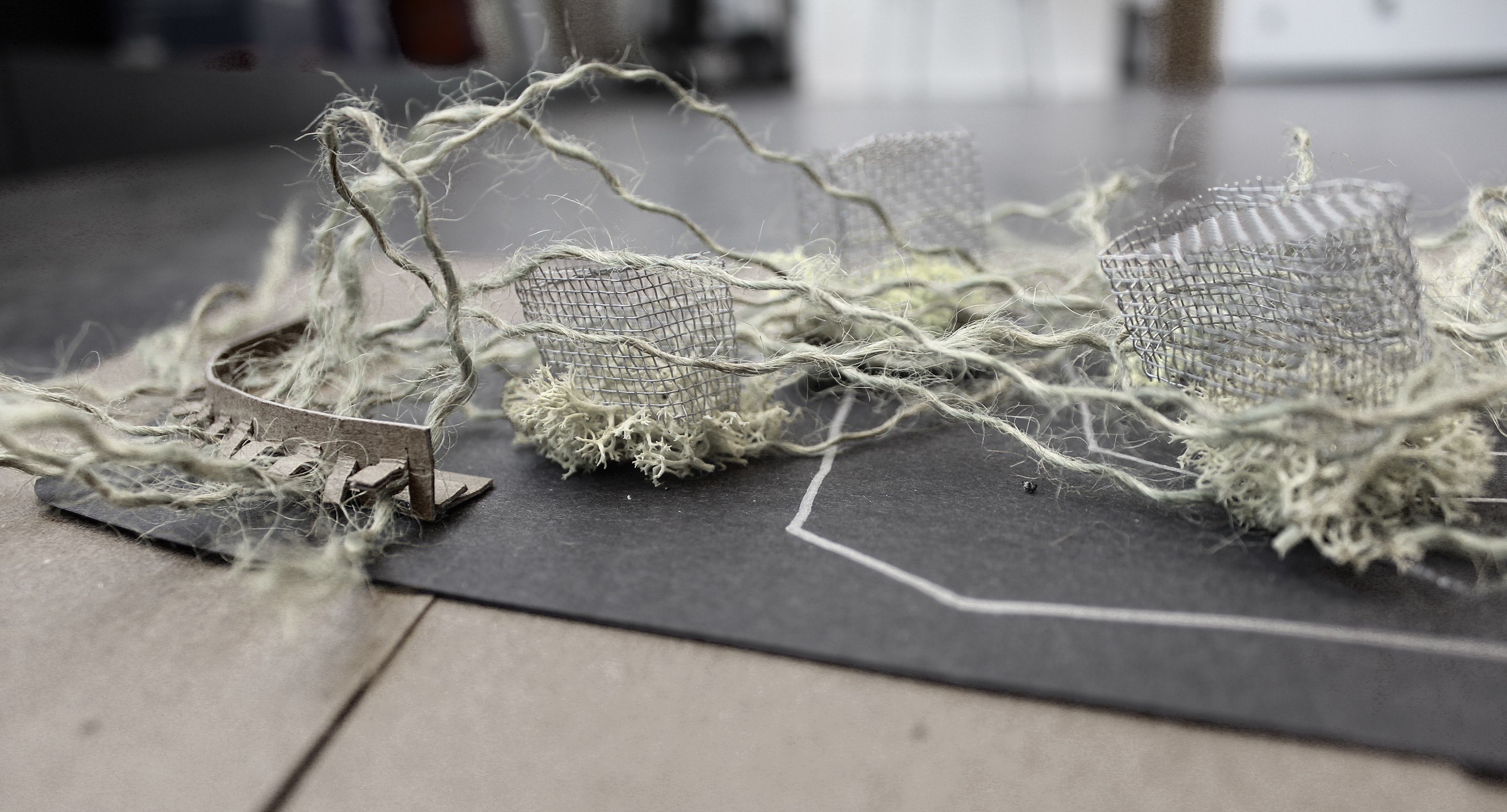 The goal of this exercise was to derive design inspiration and spatial sensibilities from a nonhuman lifeform, taking into account their morphology, behavior, and sensory capacities. I chose lichen, a composite organism resulting from a symbiotic relationship between algae and fungi. By exploring a lichenous lifestyle through secondary research and rapid modeling, I was able to derive a set of design principles which could be directly applied to our future site: University of Virginia’s Lambeth Field dormitory complex.