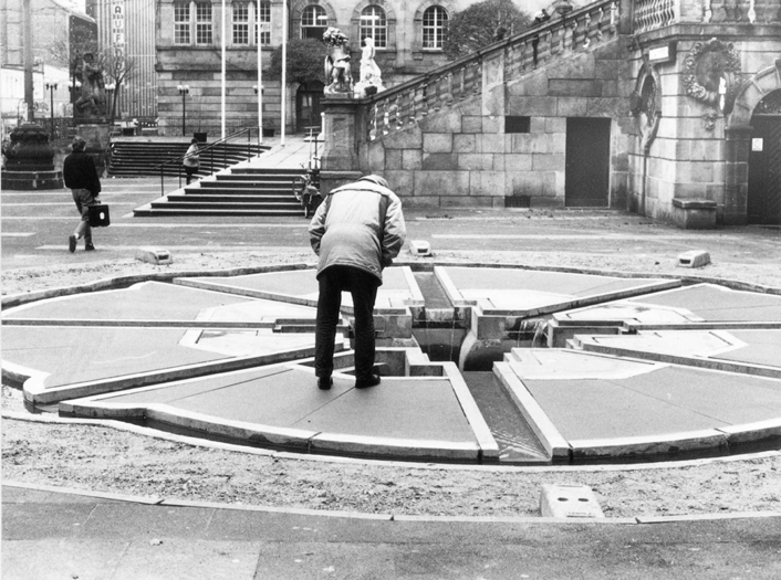 Figure 3. Horst Hoheisel’s Aschrott Fountain, an inverted fountain which mirrors a Jewish fountain destroyed by Nazi’s during the terror of Hitler’s regime. The fountain stands as an early precedent of anti-memorial aesthetic and serves as inspiration for the development of the National September 11 Memorial.