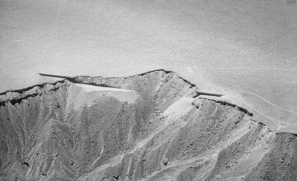 In the late 1960s, a group of young artists left New York City and headed for the desert. Disenchanted with the stuffy, commercialized nature of gallery and museum culture at the time, these artists looked toward the American West in search of a radically different type of practice. The group, which included artists such as Robert Smithson, Michael Heizer, Walter De Maria, and Nancy Holt, were interested in the earth itself as canvas and material. Commonly referred to as land art, their works explored notions such as geology, weather, erosion, entropy, and environmental phenomena. The vast, empty expanses of the American desert allowed the experimentation and scale of these practices to grow bigger and bigger, and in 1970, Michael Heizer completed a piece of earthwork that would revolutionize the public’s understanding of art and land in America. At a length of fifteen hundred feet, Double Negative is comprised of a pair of long, straight trenches spanning a gap along the edge of Nevada’s Mormon Mesa. Perfectly aligned across the indent of the mesa, the trenches read as a single, contiguous volume—a massive linear form in the negative. With the help of dynamite and a bulldozer, Heizer excavated nearly 240,000 tons of desert sandstone from the mesa, leaving it strewn down the rock face at the mouths of the trenches. The result is a colossal surgical incision within the natural landscape.